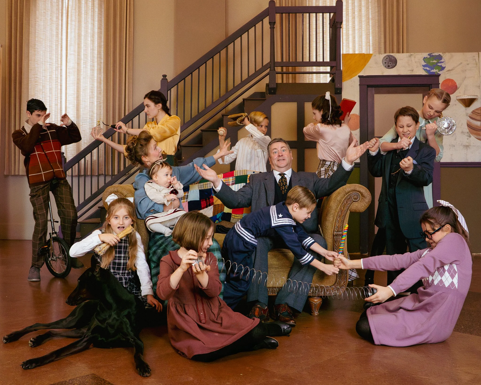 There are several versions of Cheaper by the Dozen out there—including a musical and the well-known Steve Martin movie—but our production is not a musical and is not based on the 2003 film. Instead, we’ll be performing the classic stage play adapted from the original 1948 book by Frank B. Gilbreth Jr. and Ernestine Gilbreth Carey.